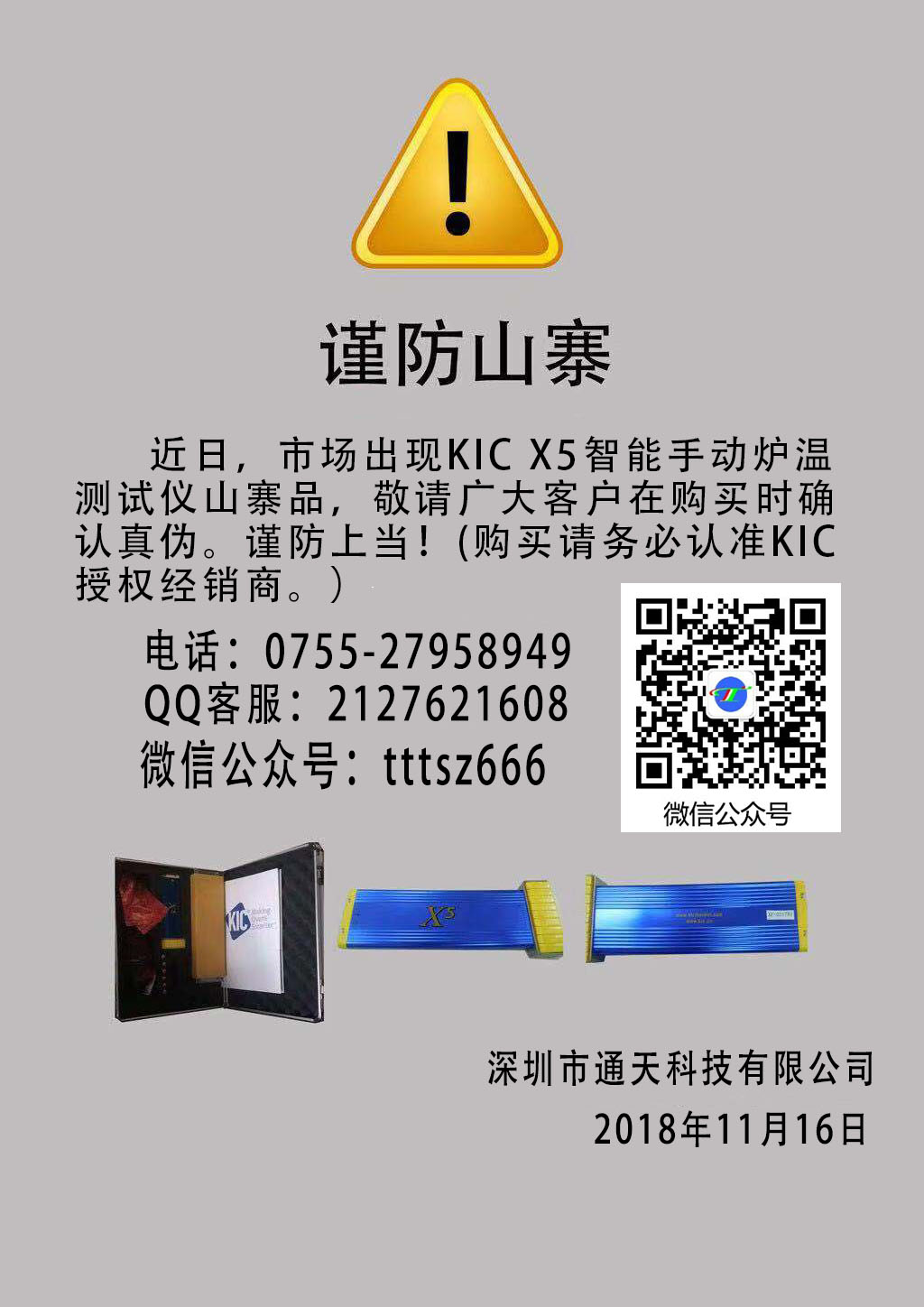 近日,市場出現(xiàn)KIC X5智能手動爐溫測試儀山寨品,敬請廣大客戶在購買時確認真?zhèn)巍V敺郎袭敚?購買請務必認準KIC授權經(jīng)銷商。)